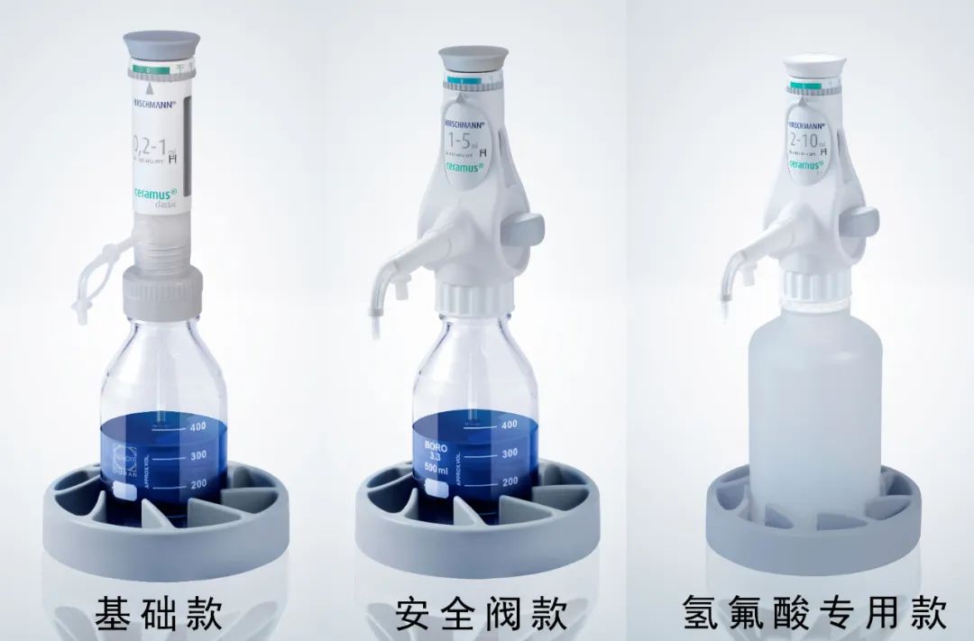 赫施曼的ceramus瓶口,采用的是瓶口处的安全阀,增加了密封状态,隔断了试剂上升到主机的通道,不仅提高了主机的使用寿命,也提升了使用顺畅度,同时降低了维护和清洗的频率和成本。对于其他常规试剂,赫施曼也有不带安全阀的基础款,小巧、实惠。
